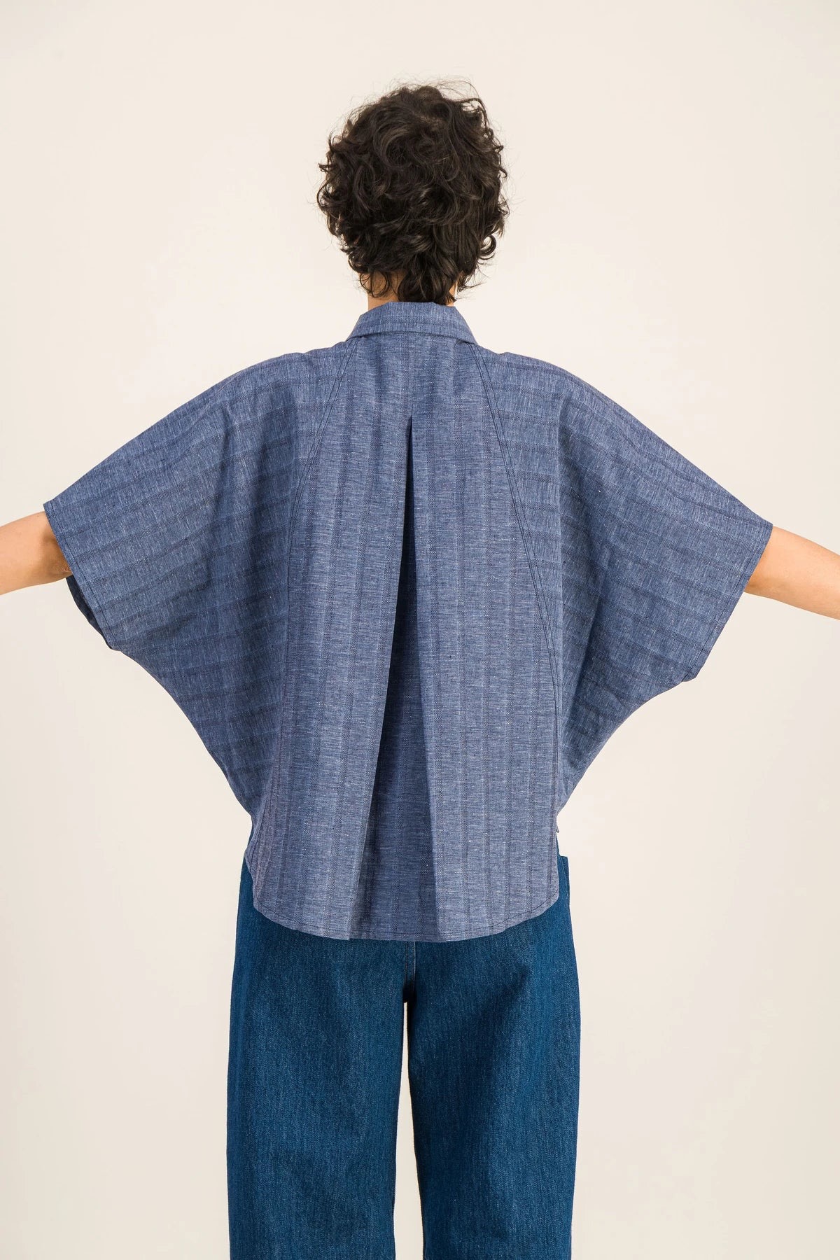 Tone-i-Tone Skjorte fra vores franske @sixsoeurs med opsmøgede ærmer vises Ikat bagsiden