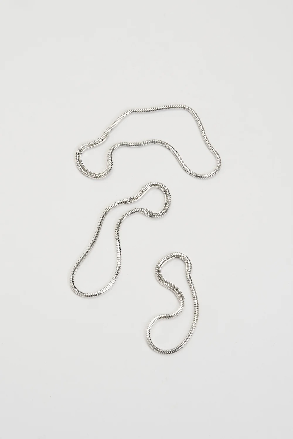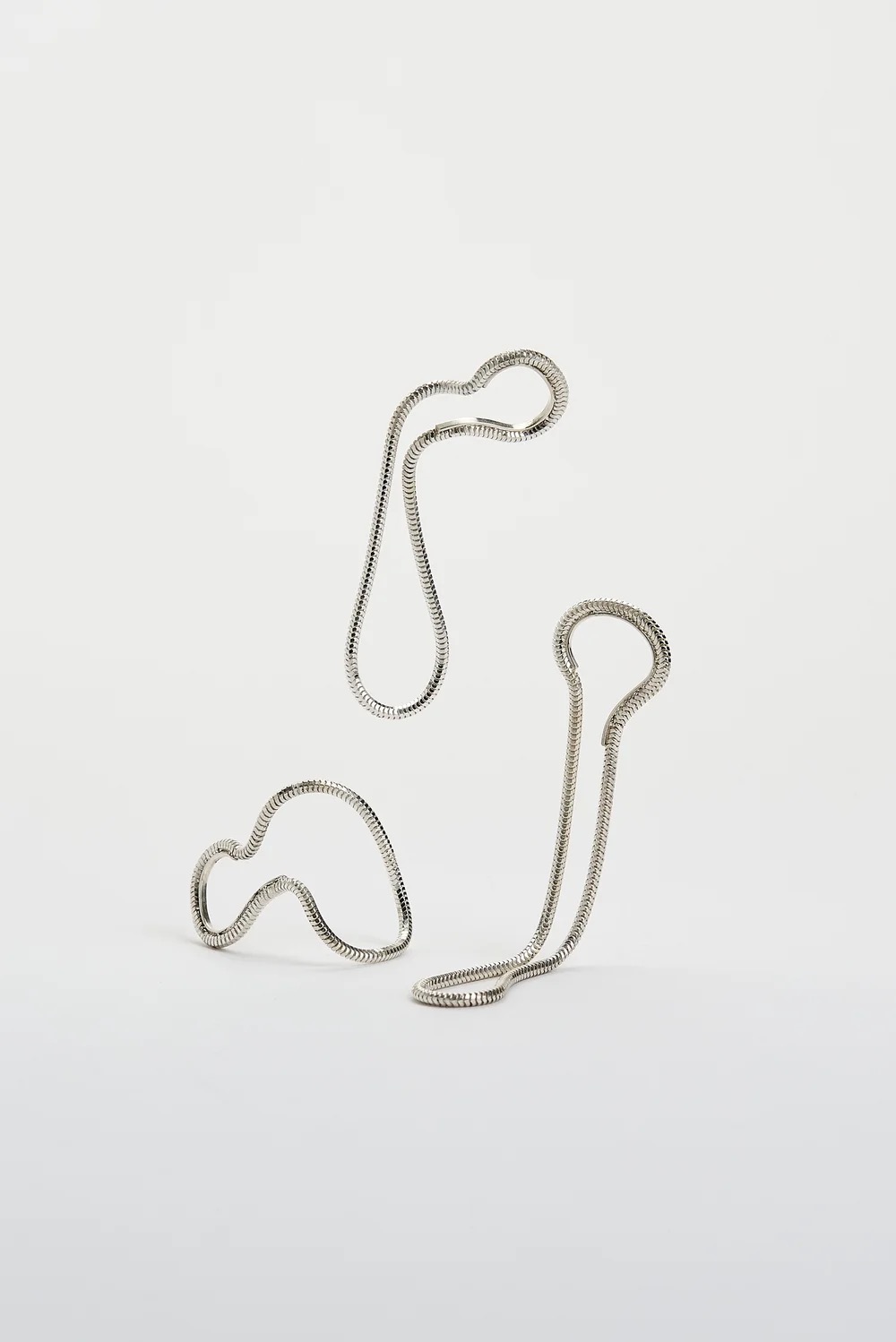 En blød og minimalistisk earcuff i sterling sølv, hvor en glat kæde former en elegant løkke omkring øret og falder let ned langs flippen. Det enkle design skaber et roligt, flydende udtryk.