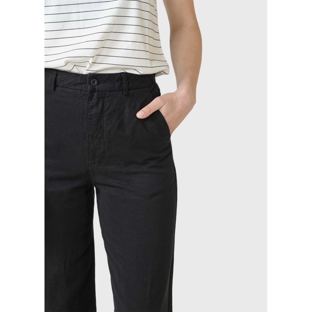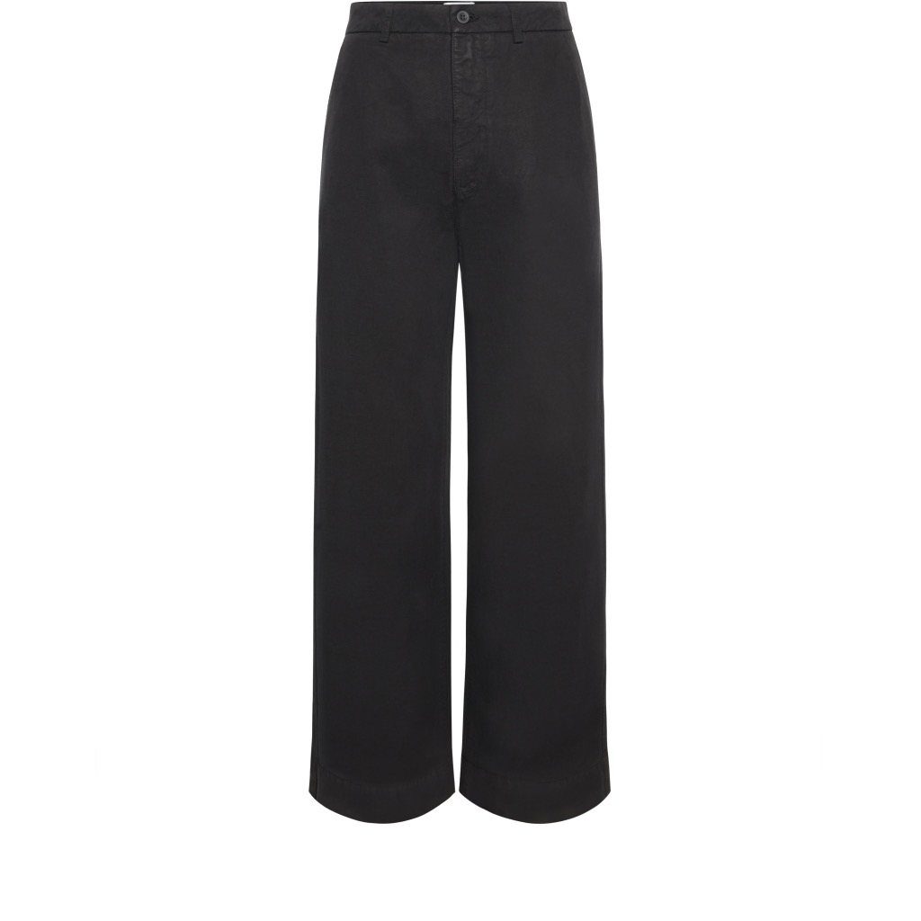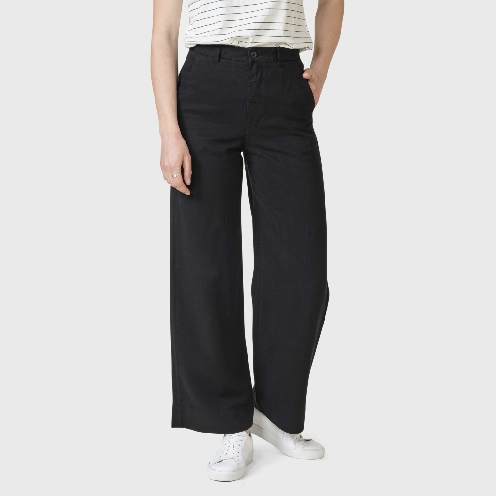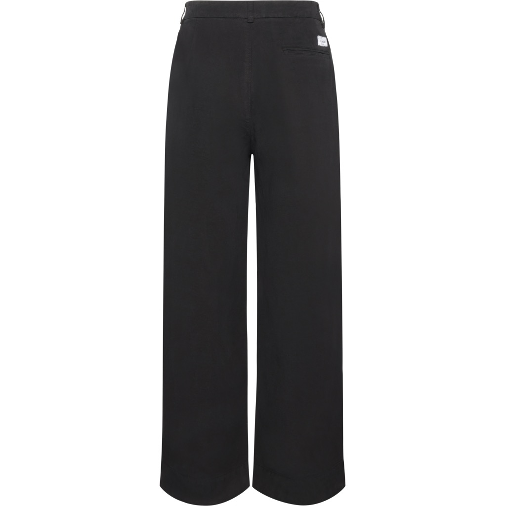 Højtaljede lærredsbukser i en super lækker lyocell og hør-blanding med et vasket udtryk. Brede lange ben, skrå forlommer og to passepolerede baglommer. Super flot pasform med en høj talje og et straight cut nedefter.