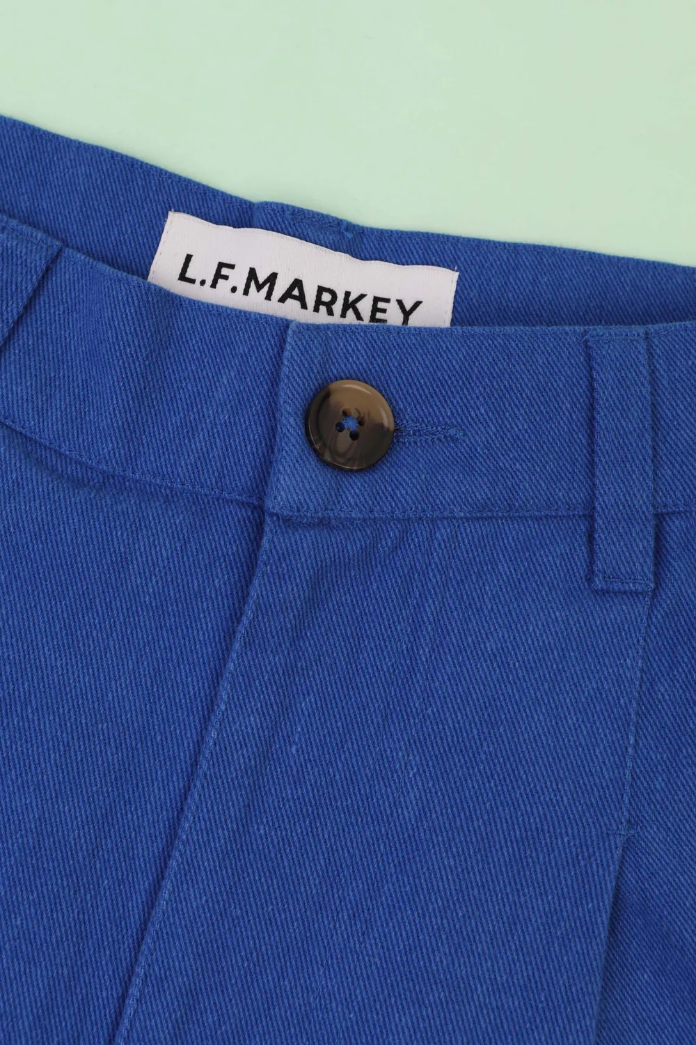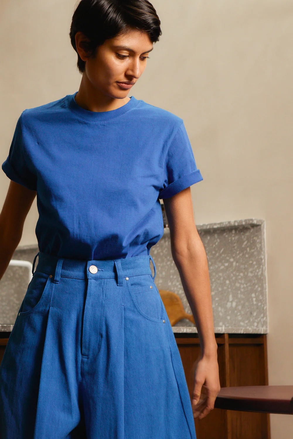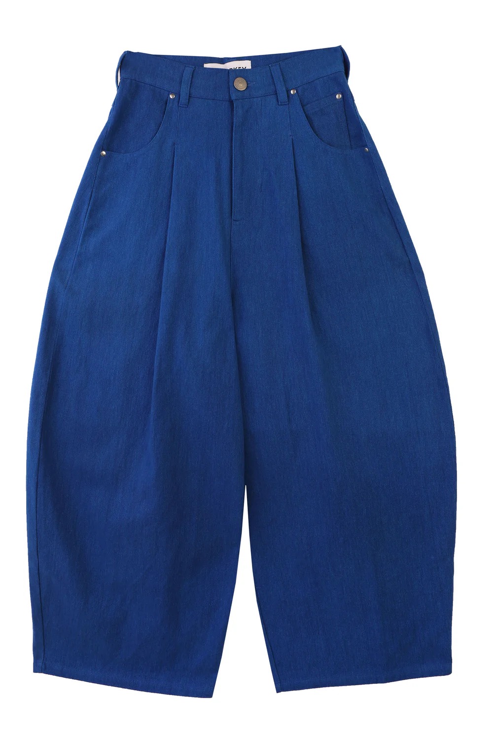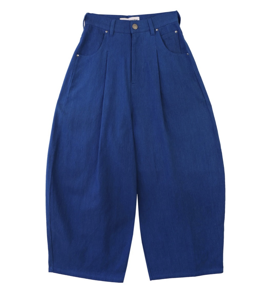 Ballon-formede bukser i koboltblå bomuld. Høj talje med læg og oversized bukseben til anklen. Trods det brede udtryk sidder bukserne flot til foroven med et super flot snit bagpå, hvilket gør dem til en af vores favoritter. Bukserne er størrelsessvarende, men til den lille side i taljen.